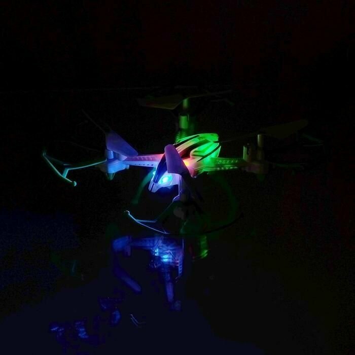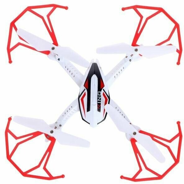 Радиоуправляемый квадрокоптер без камеры на пульте управления, работает от аккумулятора, красный информация: