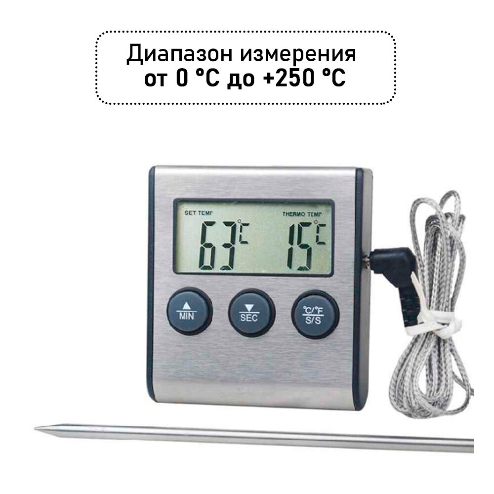 Кулинарный термометр электронный со щупом из нержавеющей стали, термометр для еды, мяса, вина, провод 1 метр / таймер кухонный
