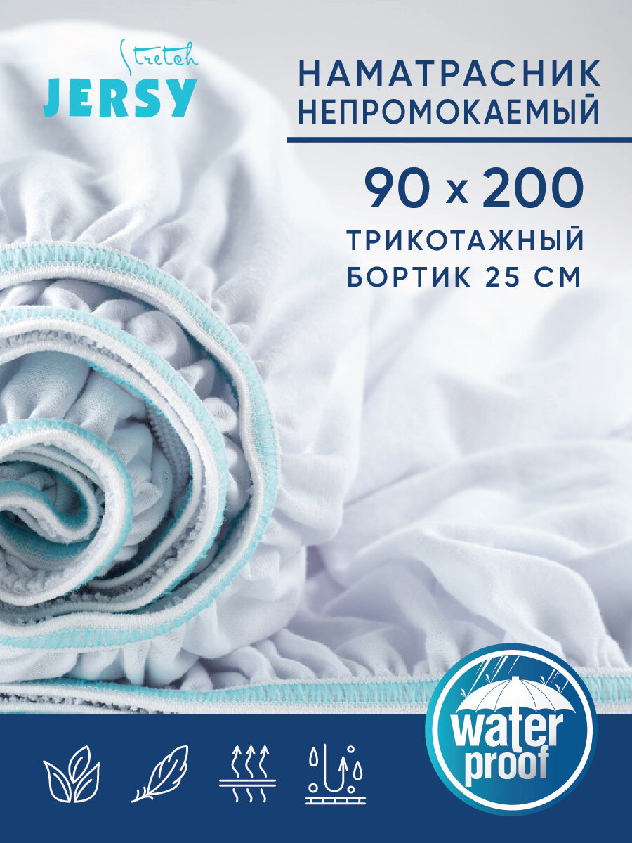 Наматрасник непромокаемый с трикотажным бортиком, размер 90х200х25 см информация: