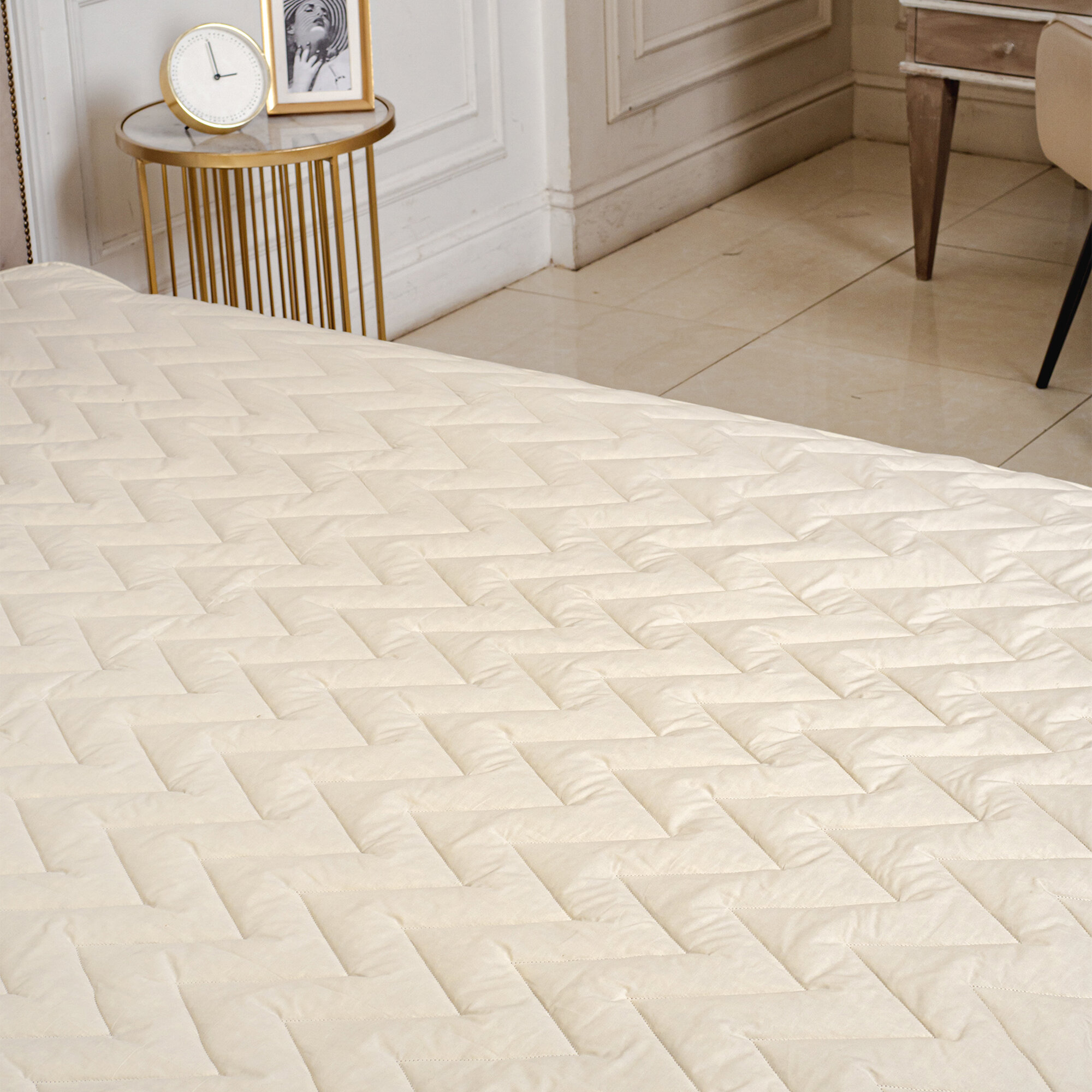 Наматрасник стёганный Асика / Наполнитель овечья шерсть / С резинками по углам - 120х200 см / Чехол на матрас