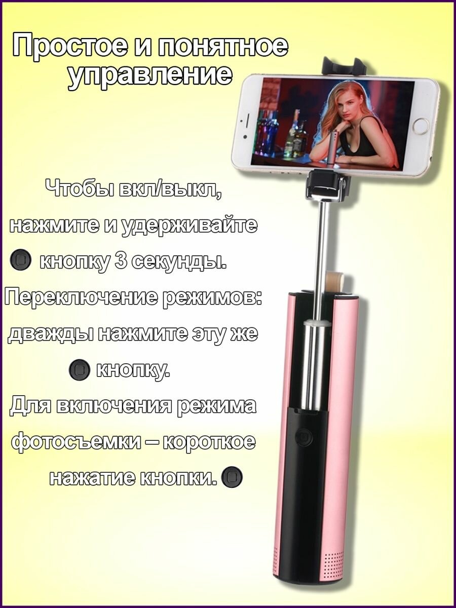 Селфи-палка - колонка (розовый) информация: