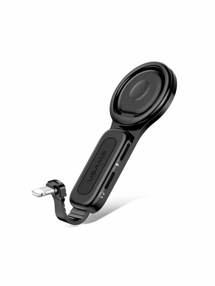 Кольцо-держатель с зарядкой для i-Phone Usams AU06 US-SJ275 Lighting + 3.5мм черное