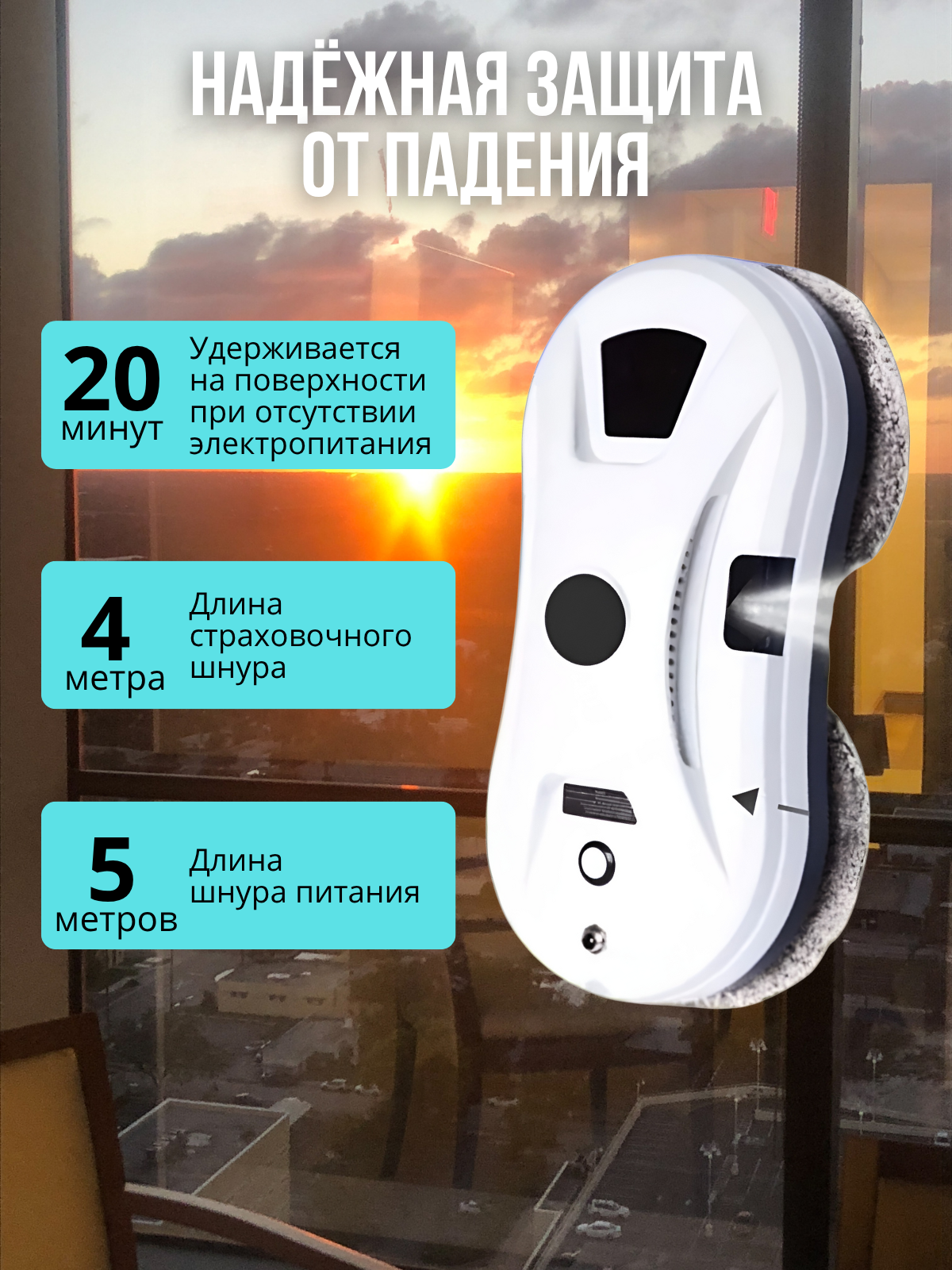 Робот-мойщик окон, с распылителем, страховочный шнур 4 м, пульт ДУ, 90 Вт, 10 сменных тряпок