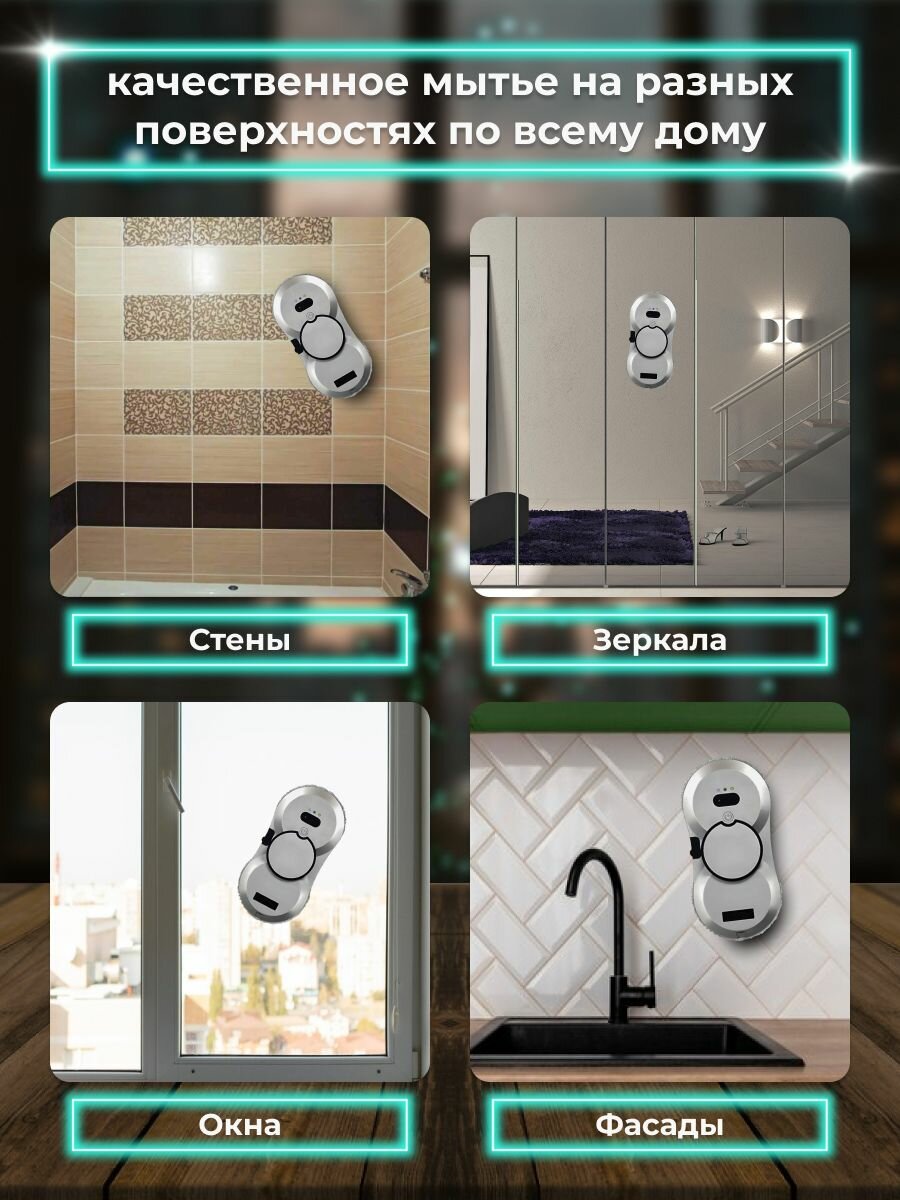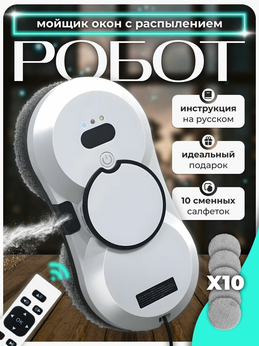 Робот-мойщик окон, с распылителем, страховочный шнур 4 м, пульт ДУ, 90 Вт, 10 сменных тряпок