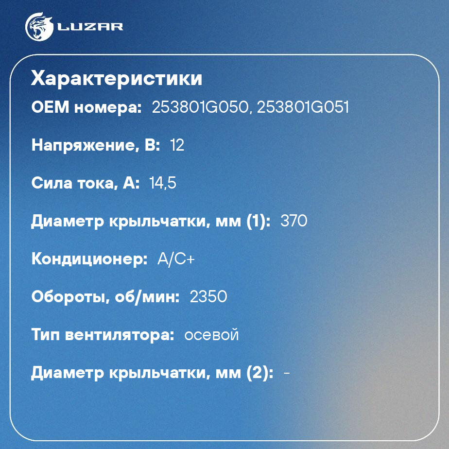 Вентилятор Радиатора LUZAR арт. LFK0810