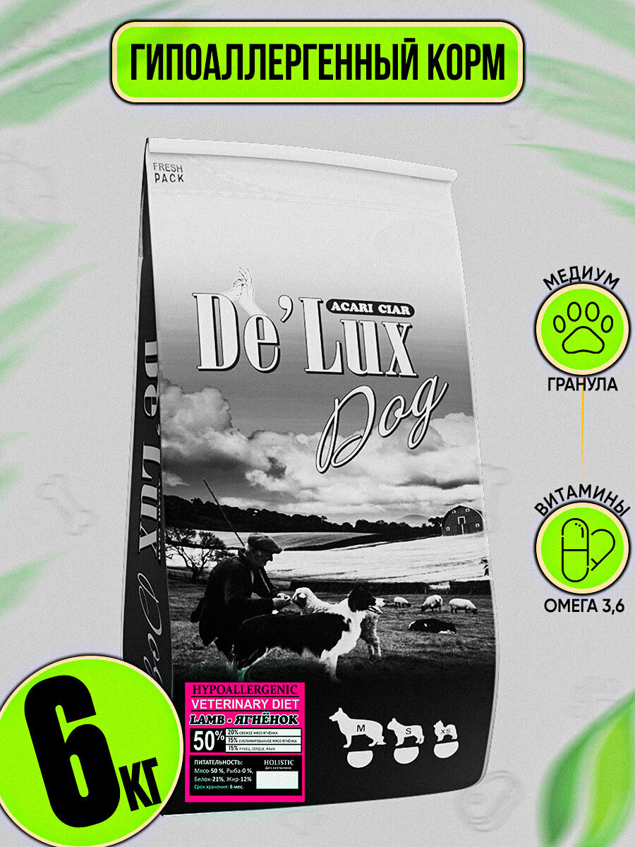 Гипоаллергенный сухой корм DE'LUX Vet A`Dog Hypoallergenic Lamb (ягнёнок) класса холистик для собак всех пород 3,2 кг (медиум) акари киар 2 930 ₽