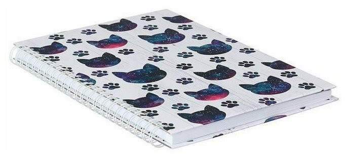 10 цен на Блокнот-скетчбук А5+, 60 листов на гребне Космические Коты, твёрдая обложка, матовая ламинация, бл .
