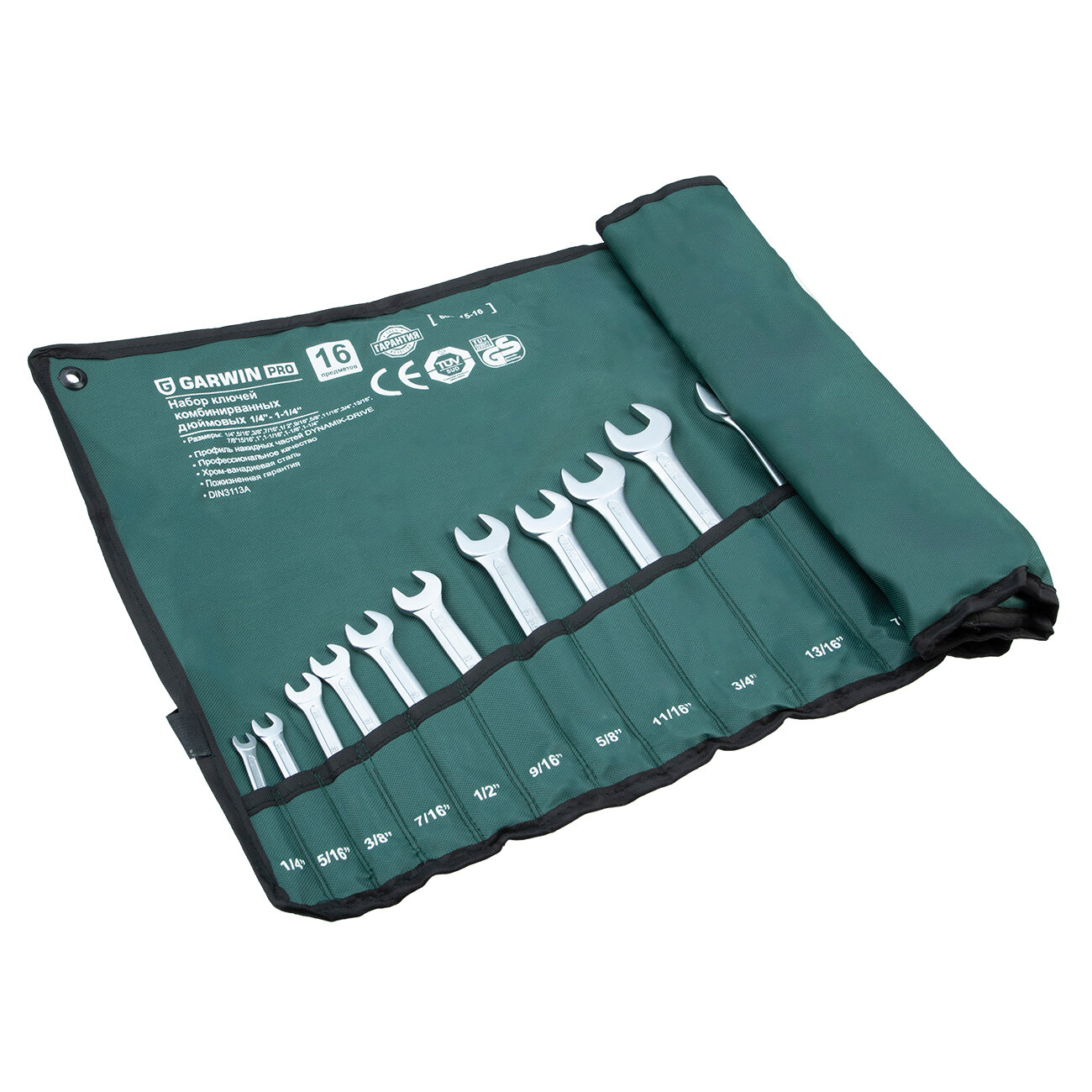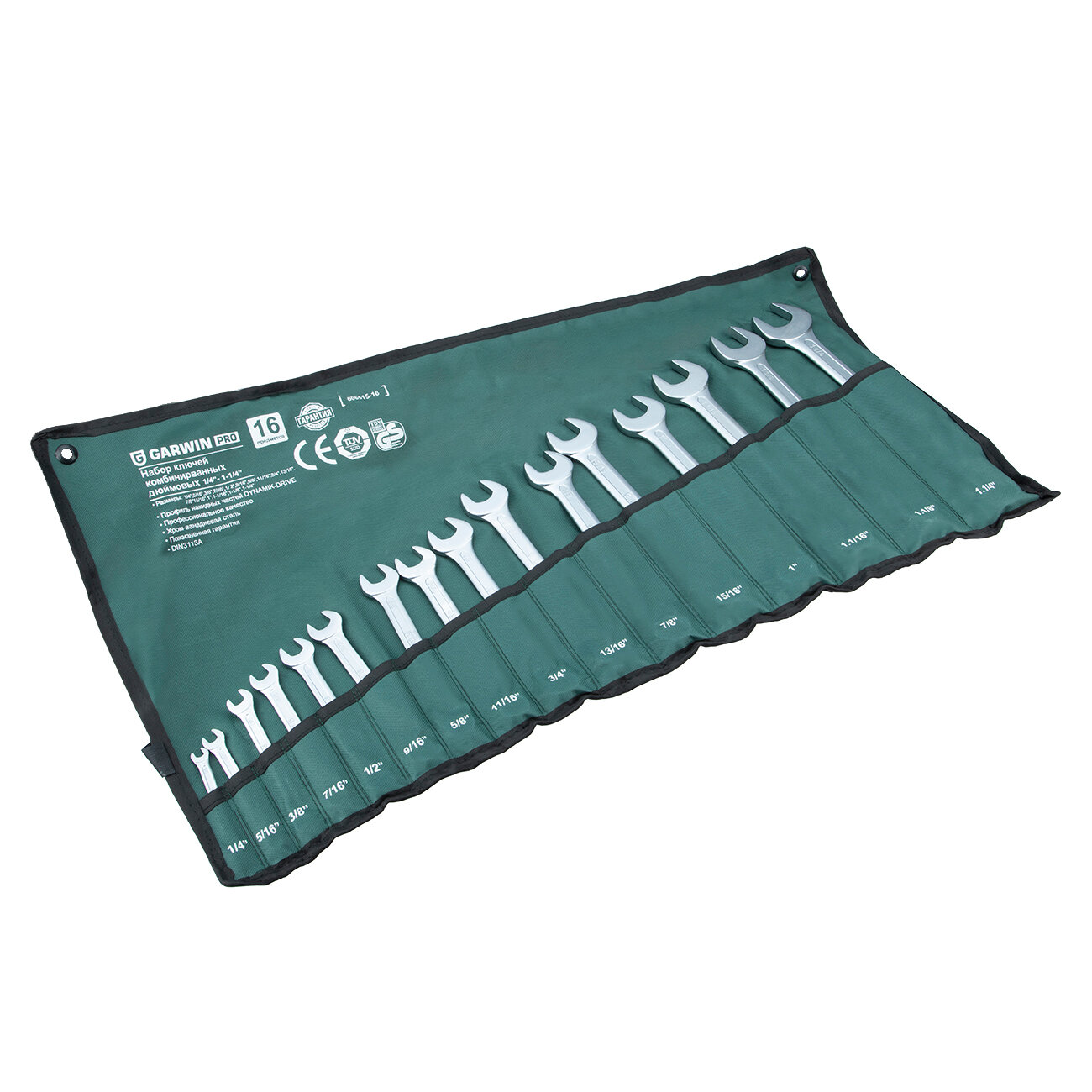 10 цен на GARWIN PRO 606515-16 Набор ключей комбинированных дюймовых 16 предметов 1/4"-1-1/4"