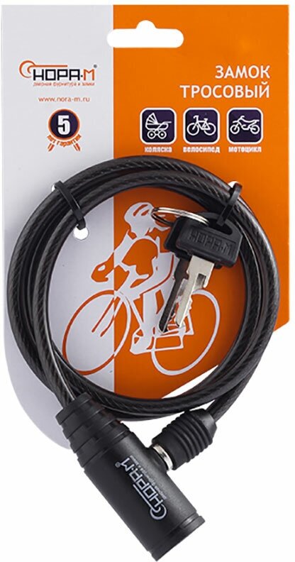 10 цен на Замок велосипедный нора-м №22 размер 6х800 мм черный (18993)