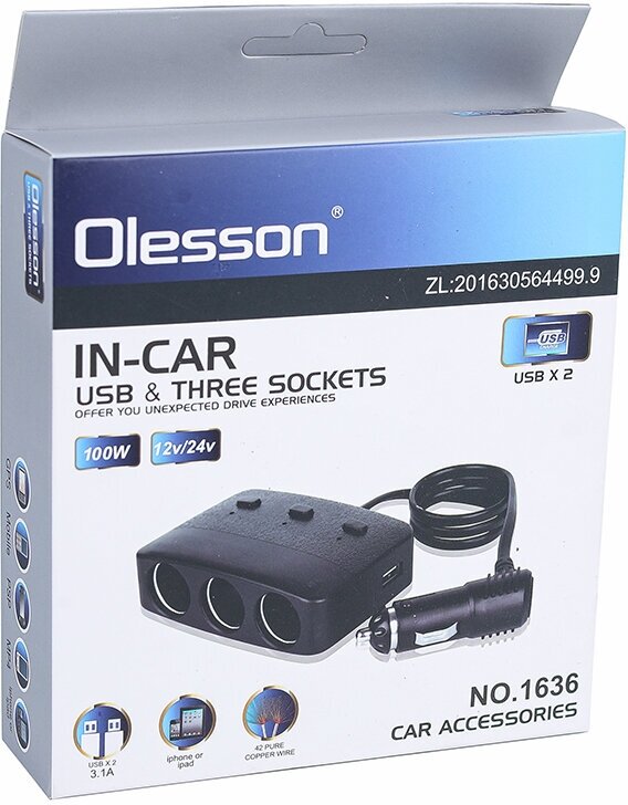Разветвитель прикуривателя 2USB 3 разъема 12-24V (NO 1636) информация: