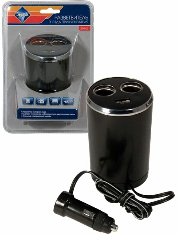 Отзывы на Разветвитель электропитания от прикуривателя Nova Bright 2 гнезда + 1 USB-порт 39945