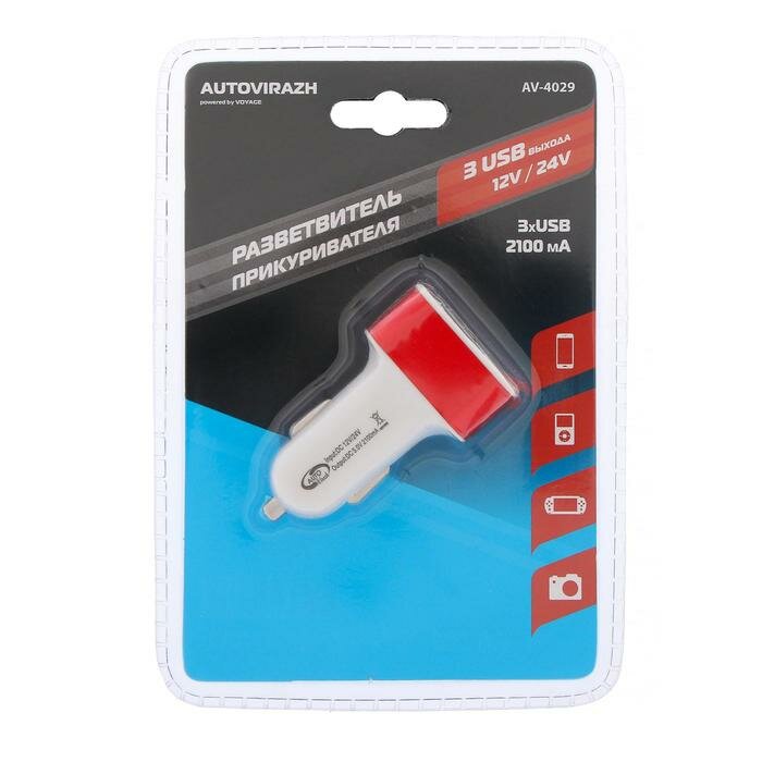 10 цен на Autovirazh Разветвитель прикуривателя Autovirazh 3 USB, 12/24V, AV-4029