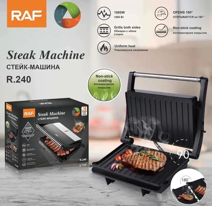 Отзывы на Гриль электрический RAF R-240, стейк-машина, черный, антипригарное покрытие
