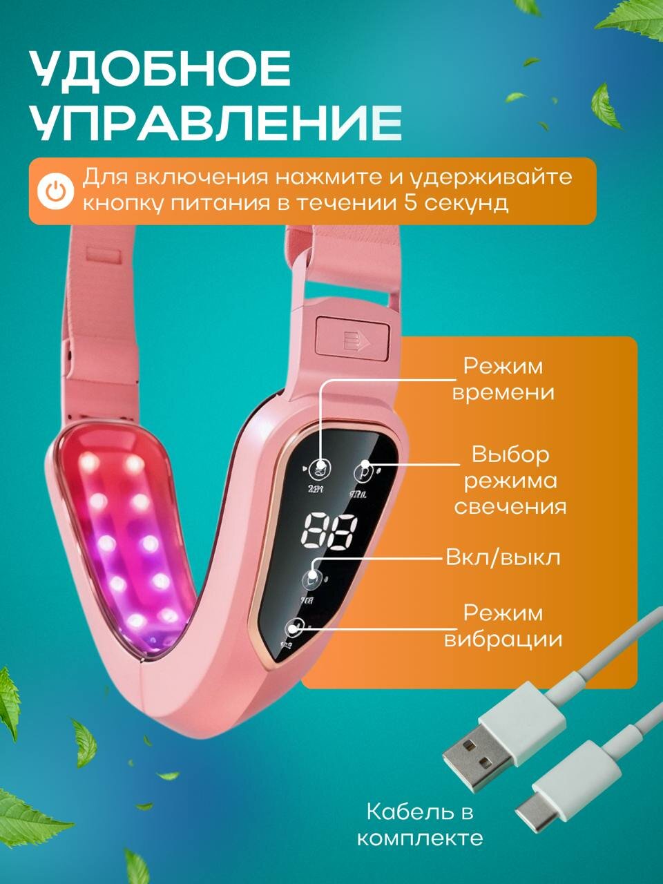 Светодиодный лифтинг массажер для лица, для подтяжки щек и лица / Микротоковый фотонный бандаж розовый информация: