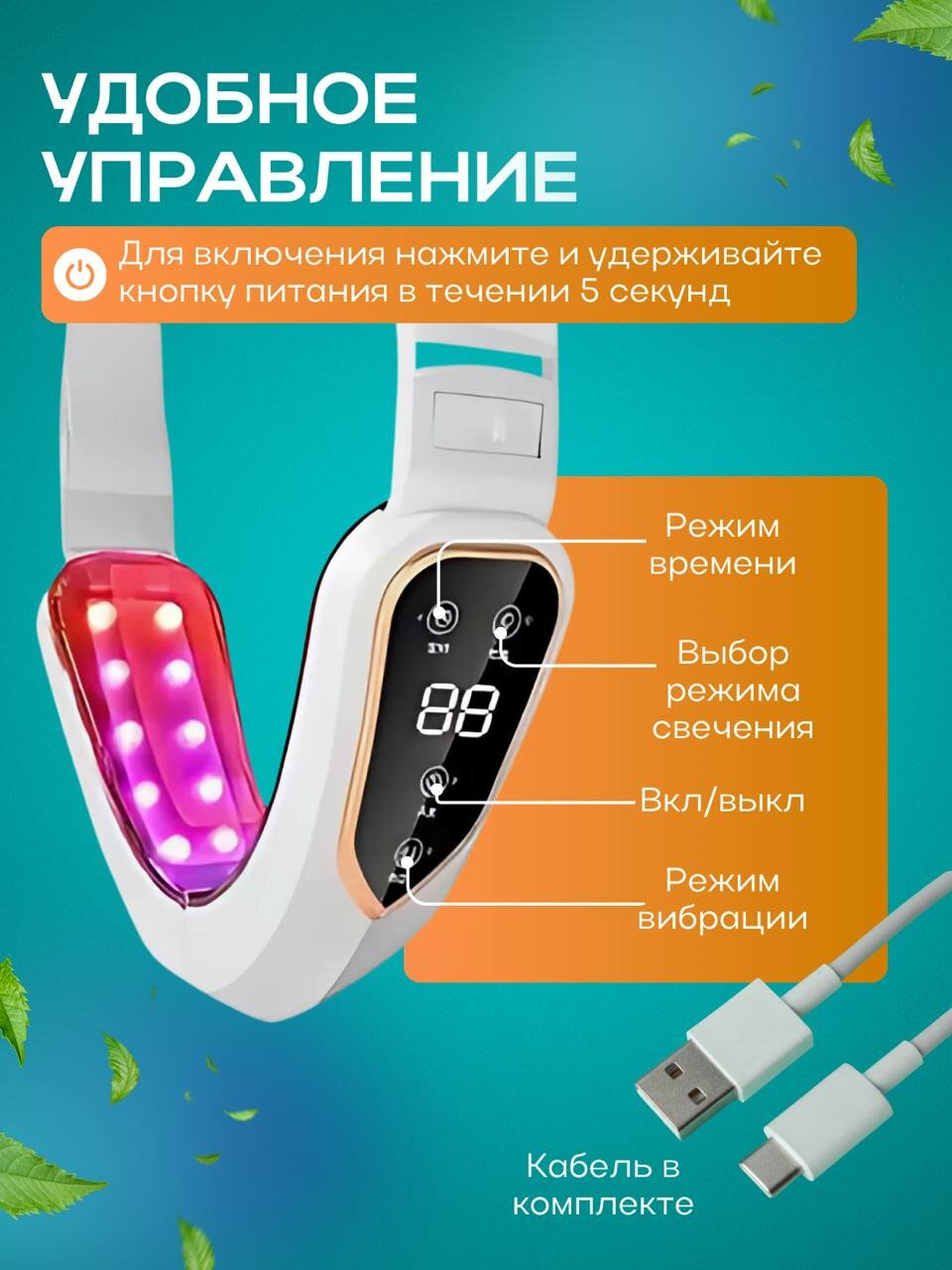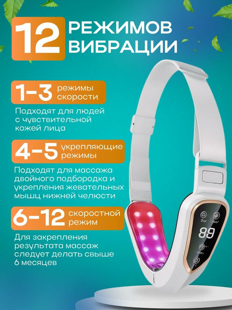 Светодиодный лифтинг массажер для лица, для подтяжки щек и лица / Микротоковый фотонный бандаж белый информация:
