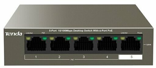 Tenda TEF1105P-4-63W PoE, 5 портов 10/100 МбитBase-TX RJ45. Передача до 250 метров, IEEE 802.3at и IEEE 802.3af