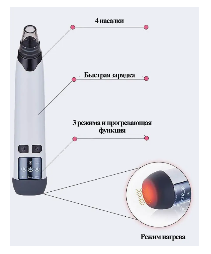 Отзывы на Вакуумный косметический аппарат/4 насадки/ LED дисплей/ Функция горячего компресса/Перезаряжаемый