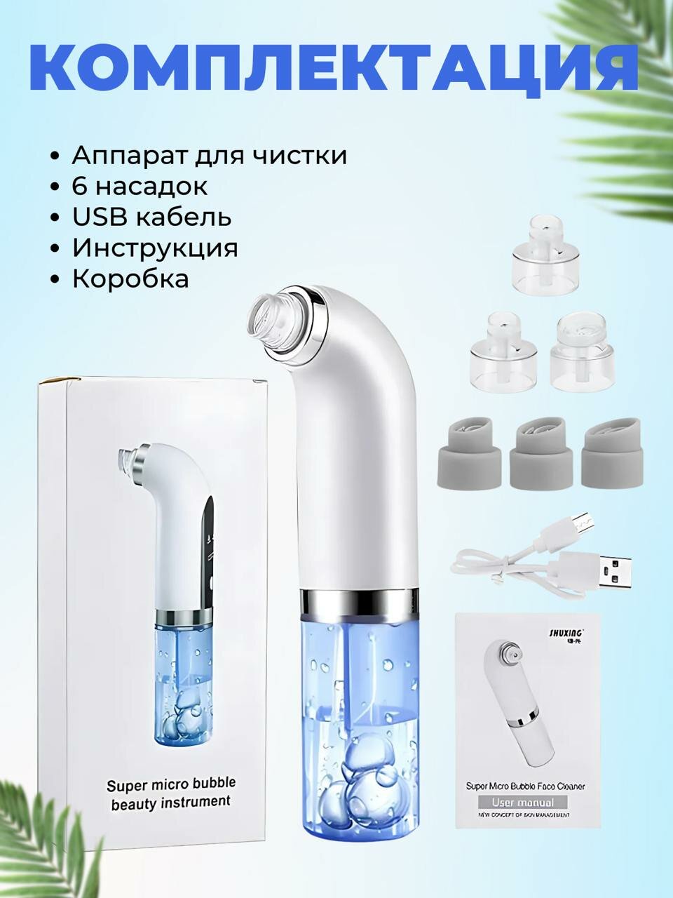Прибор для вакуумной чистки лица / Косметологический аппарат для удаления угрей Super Micro Bubble Face Cleaner информация:
