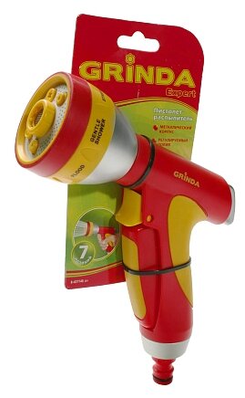 Поливочный пистолет GRINDA PROLine F-7 7 режимов, курок спереди, двухкомпонентный с регулятором напора