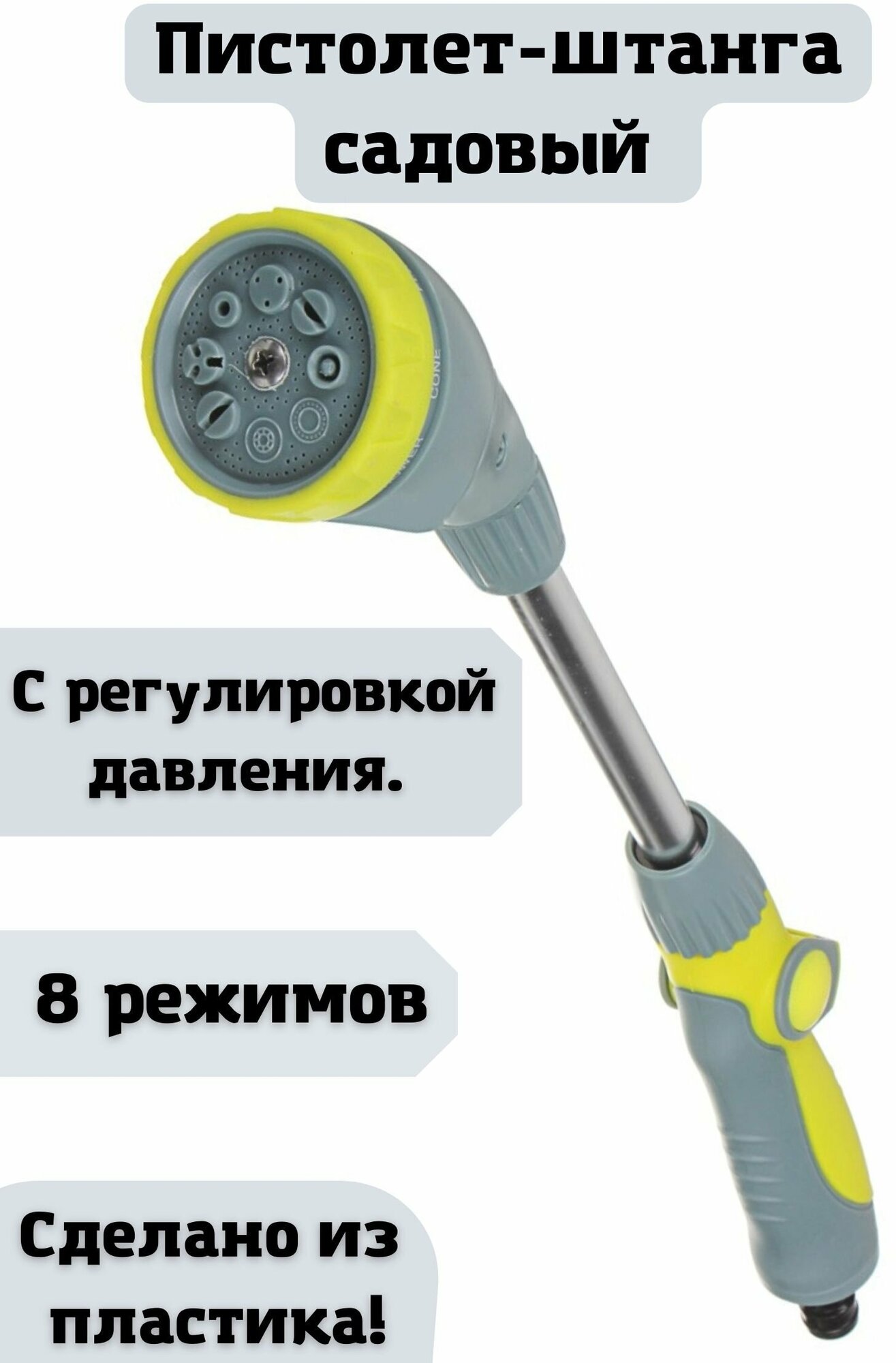 Пистолет штанга садовый для полива ULMI, 8 режимов, регулировка давления информация: