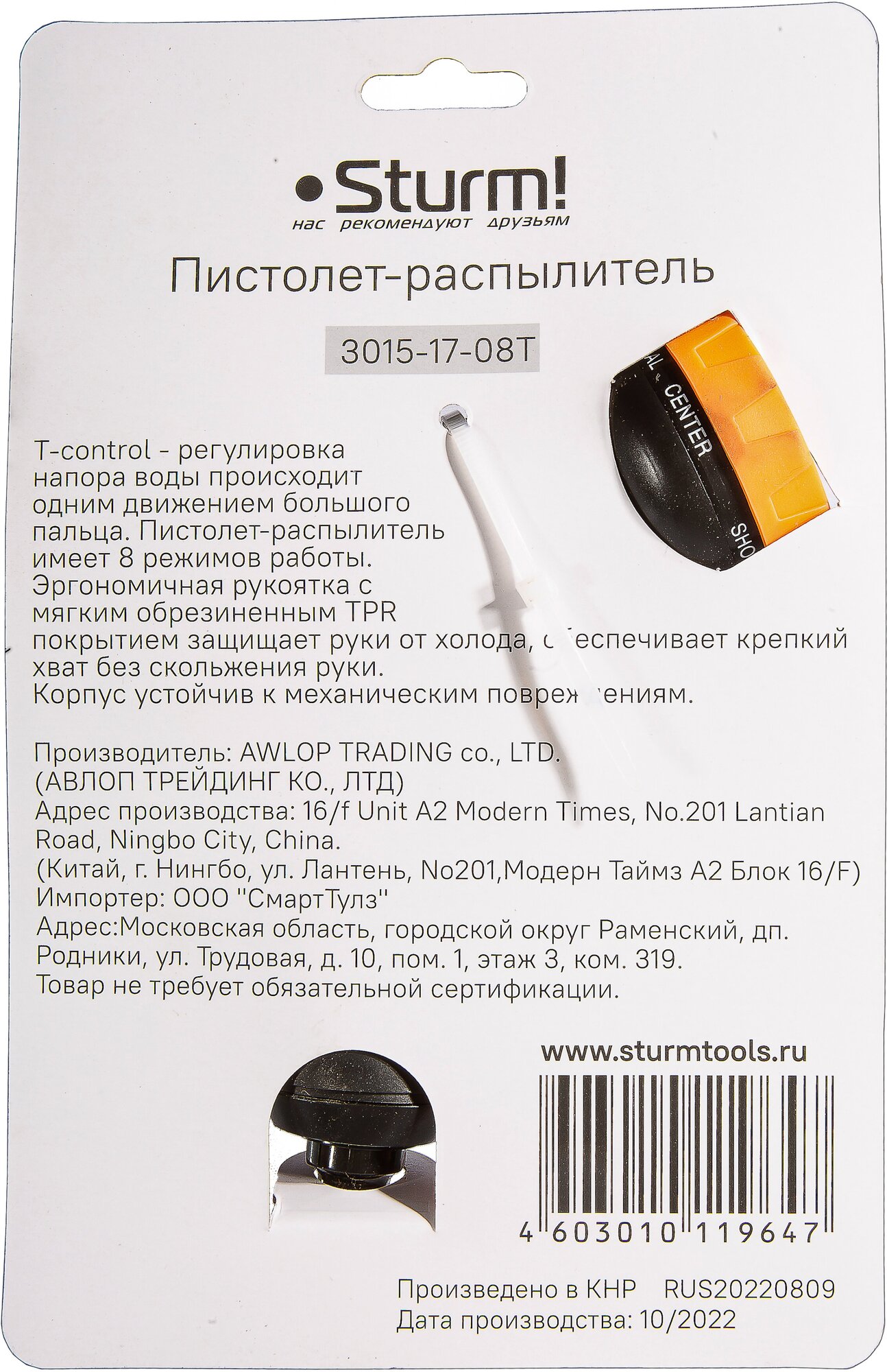 Пистолет для полива Sturm! 3015-17-08T информация: