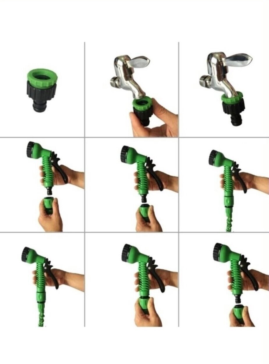 Отзывы на Шланг садовый поливочный с распылителем 7 режимов, Растягивающийся, 22.5 метра, 3/4, Зеленый