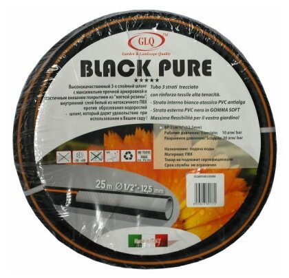 BLACK PURE 25m 3/4" GLQ - армированный 3-х слойный шланг P=8 Bar информация: