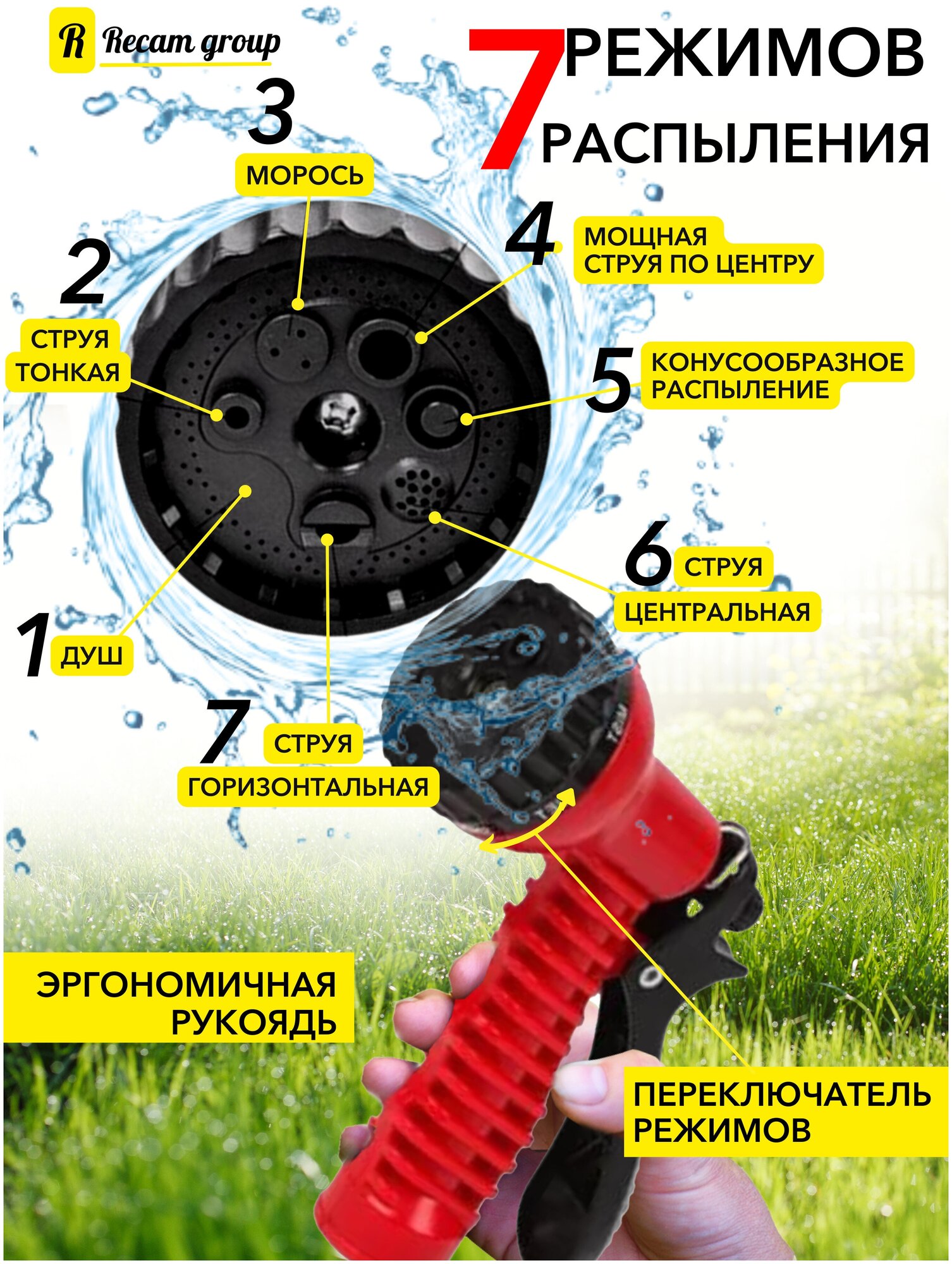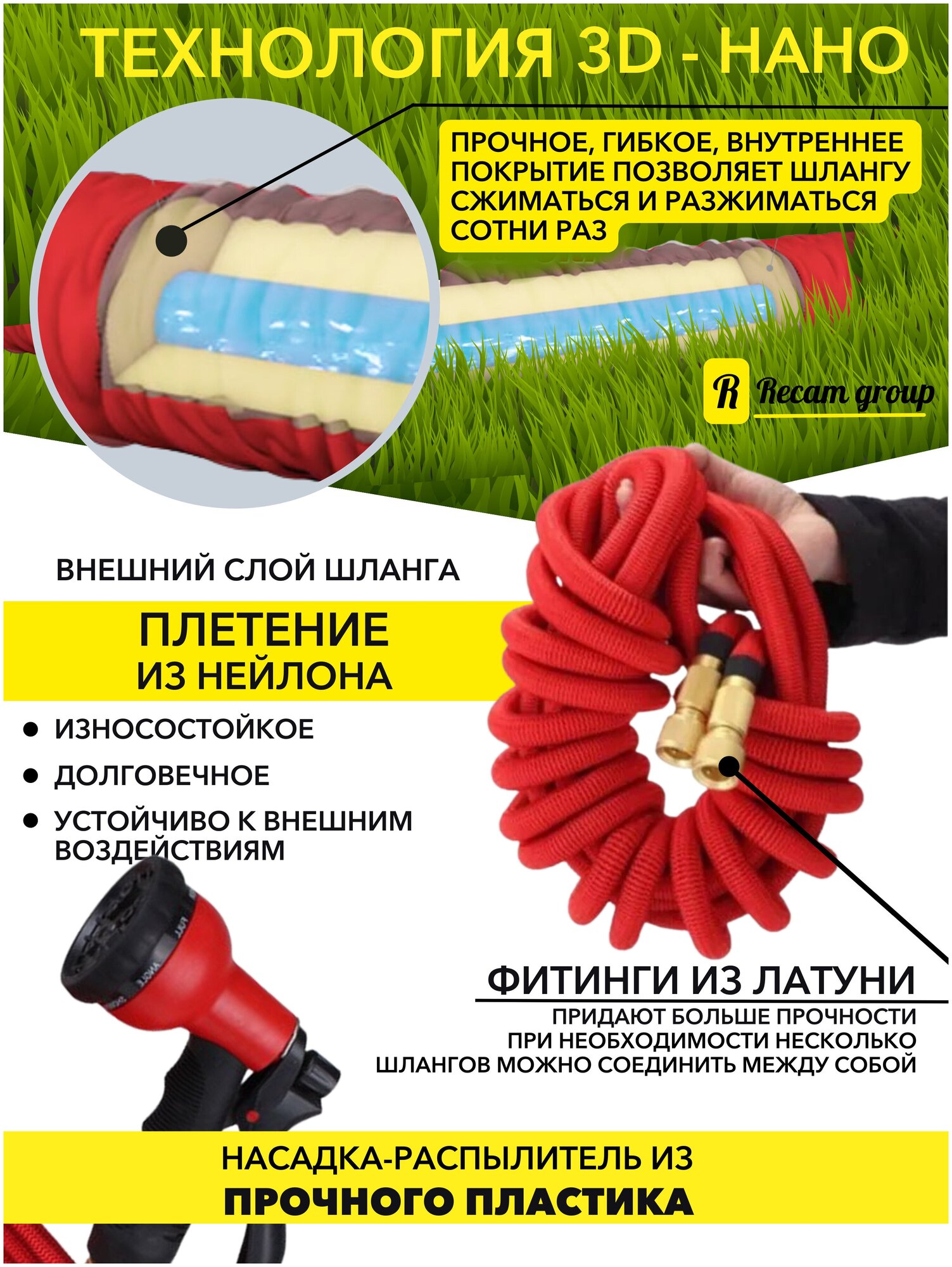 Шланг растягивающийся 50FT 25 метров для полива / Гибкий садовый шланг поливочный информация: