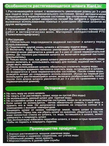 Растягивающийся садовый шланг XIANLIN 15 м. зеленый (MH-IX-50FT) информация: