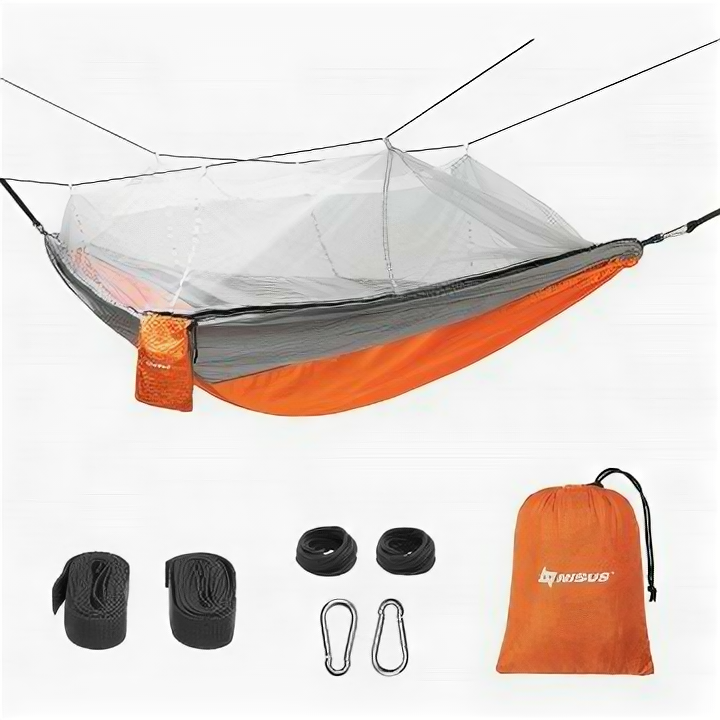 Гамак без планок NISUS 140х260см с москитной сеткой нейлон 210T (N-MH-GG)