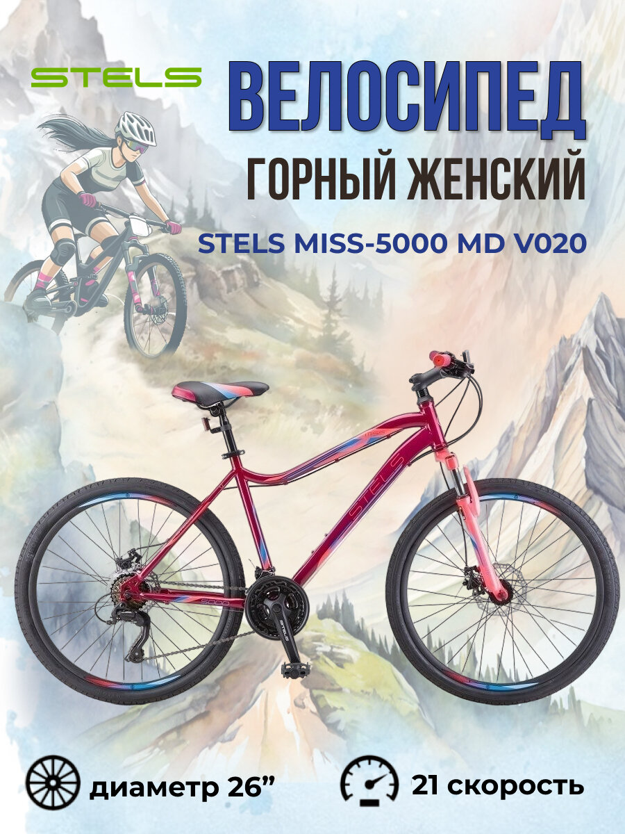 Велосипед взрослый двухколесный спортивный / Велосипед женский горный Stels Miss-5000 MD V020 рама 18" колеса 26" информация: