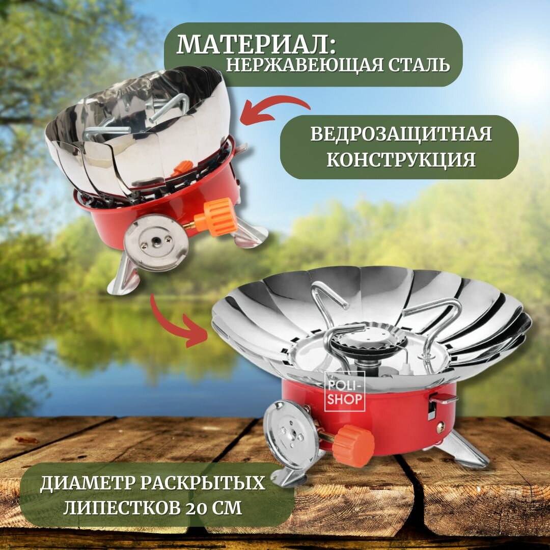 10 цен на Плитка газовая портативная с лепестками и пьезоподжигом ZT-203 / Горелка туристическая