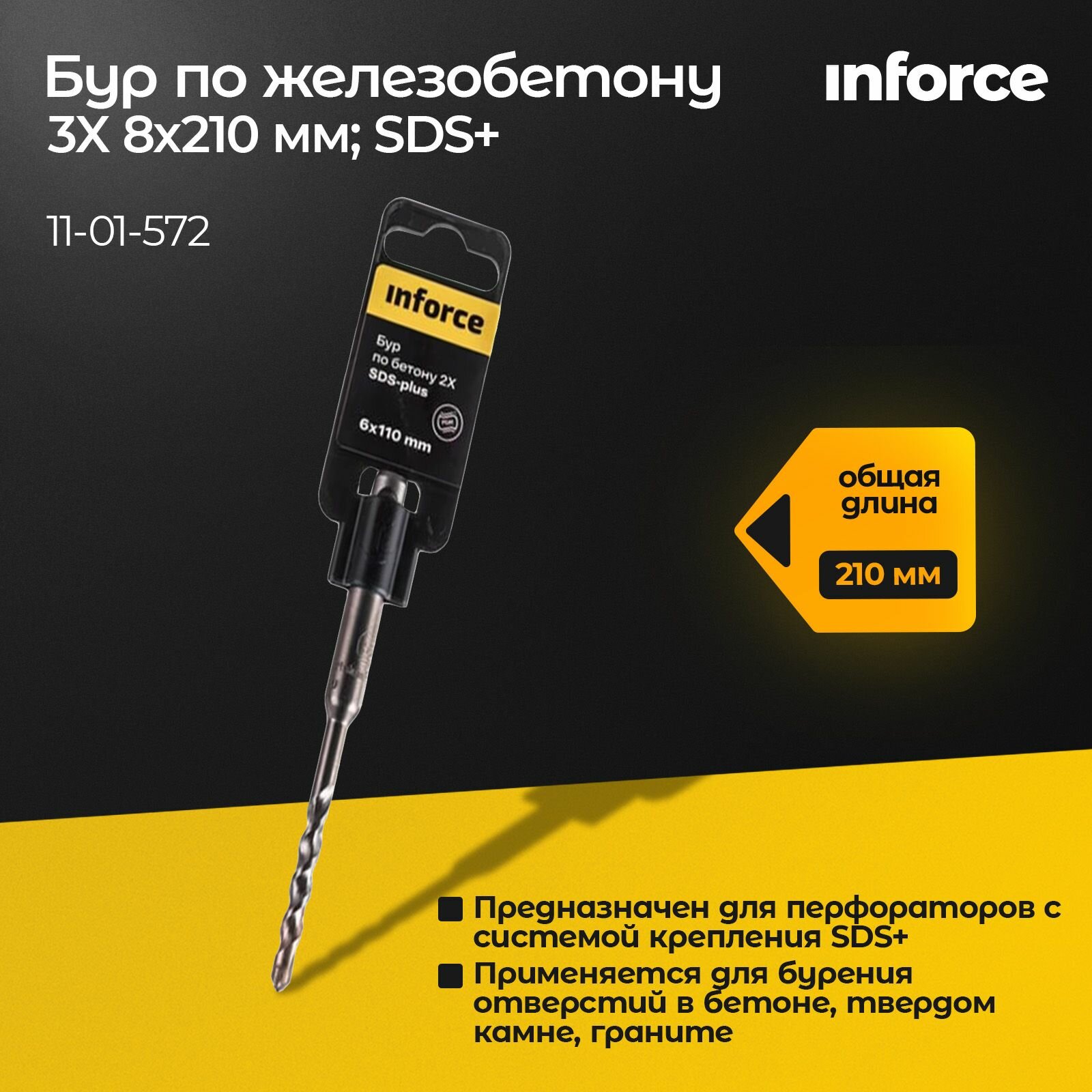 Inforce Бур SDS+ 8х210 по железобетону 3X 11-01-572 информация: