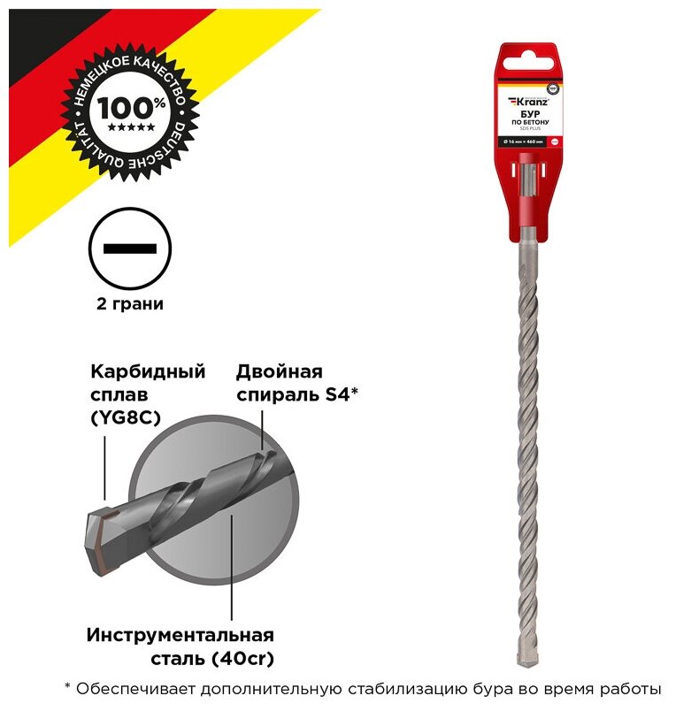 Бур по бетону 16x460x400 мм SDS Plus KRANZ информация: