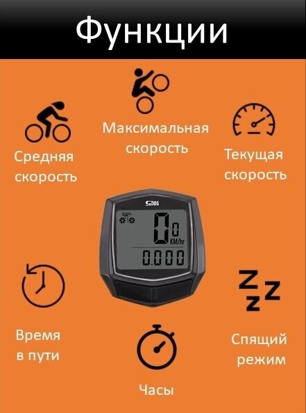 | Функции | максимальная скорость / общее время движения / одометр / расстояние одной поездки / секундомер / сохранение данных при замене батареи / сравнение текущей скорости со средней / средняя скорость / текущая скорость / часы |