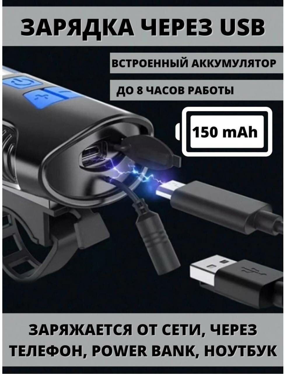 Велосипедный светодиодный фонарь со спидометром и встроенным аккумулятором / Фара для велосипеда, самоката /синий /VARDA информация: