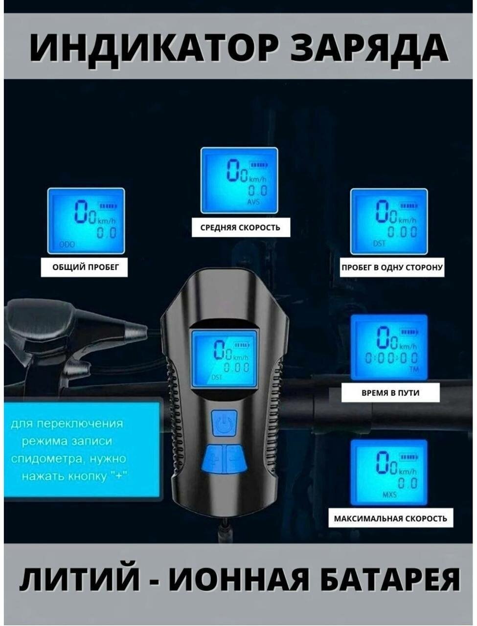 Отзывы на Велосипедный светодиодный фонарь со спидометром и встроенным аккумулятором / Фара для велосипеда, самоката /синий /VARDA