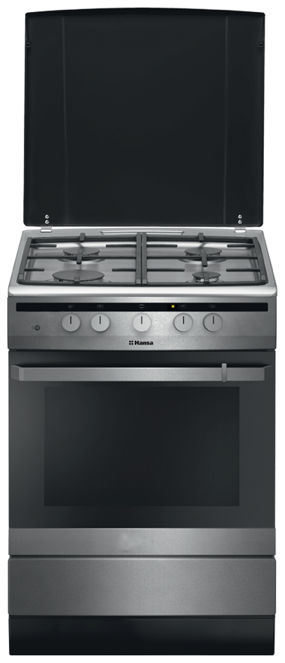 Газовая плита Hansa FCGX522222H, нержавеющая сталь, 70 л, 7400 Вт, гриль, электроподжиг, газконтроль, таймер