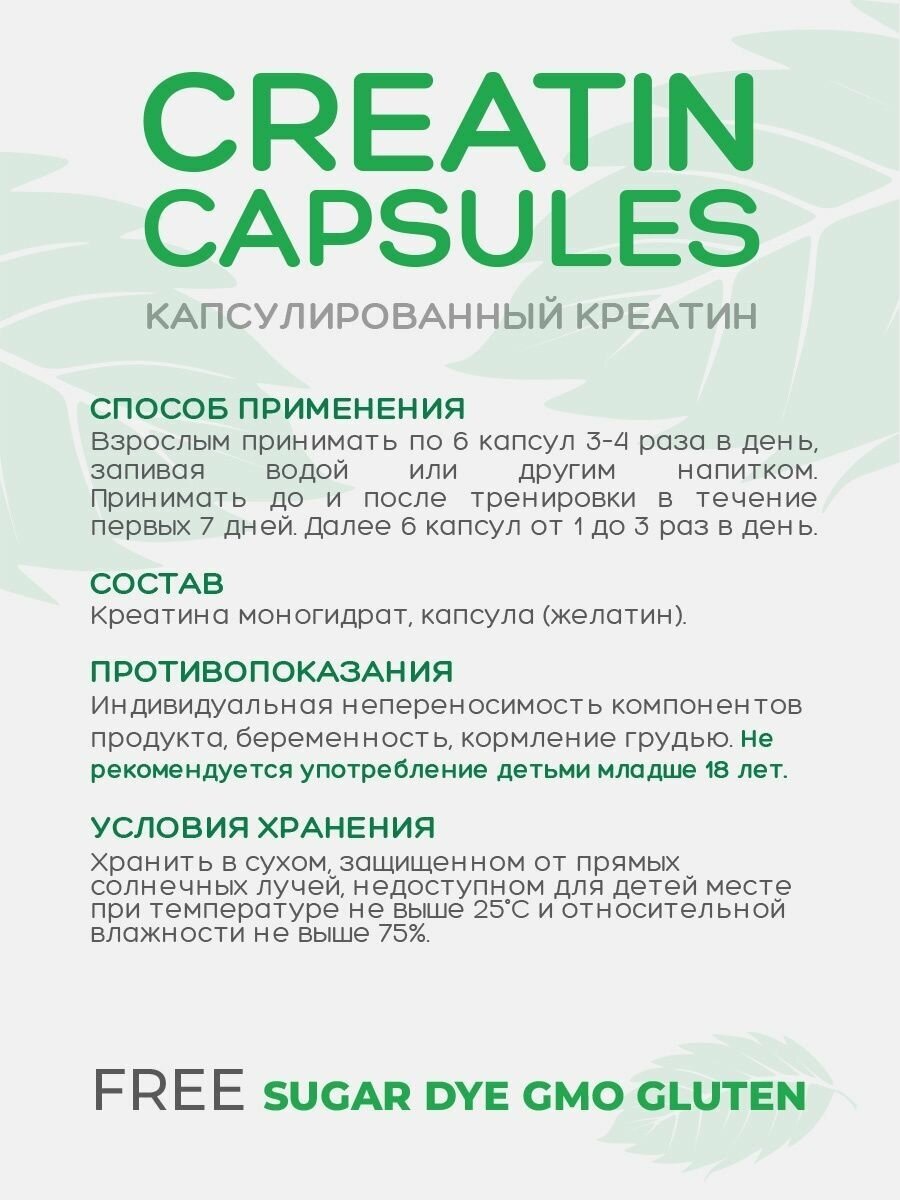 Креатин Моногидрат 100% в капсулах, 120 капсул, Creatine для роста мышц и силы, Rocket Nutrition