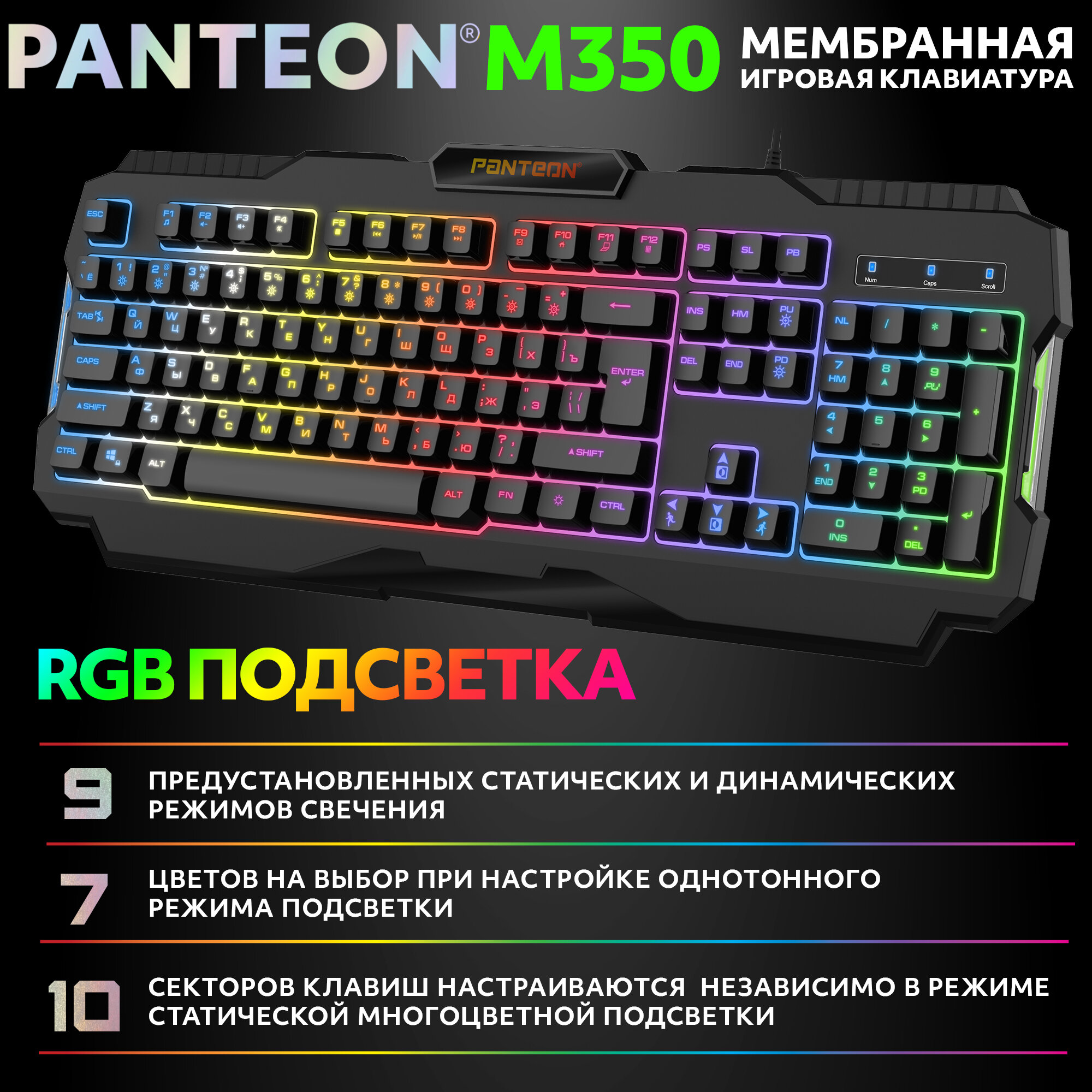 Мембранная игровая клавиатура с зонированной LED-подсветкой RGB LIGHT PANTEON M350 информация: