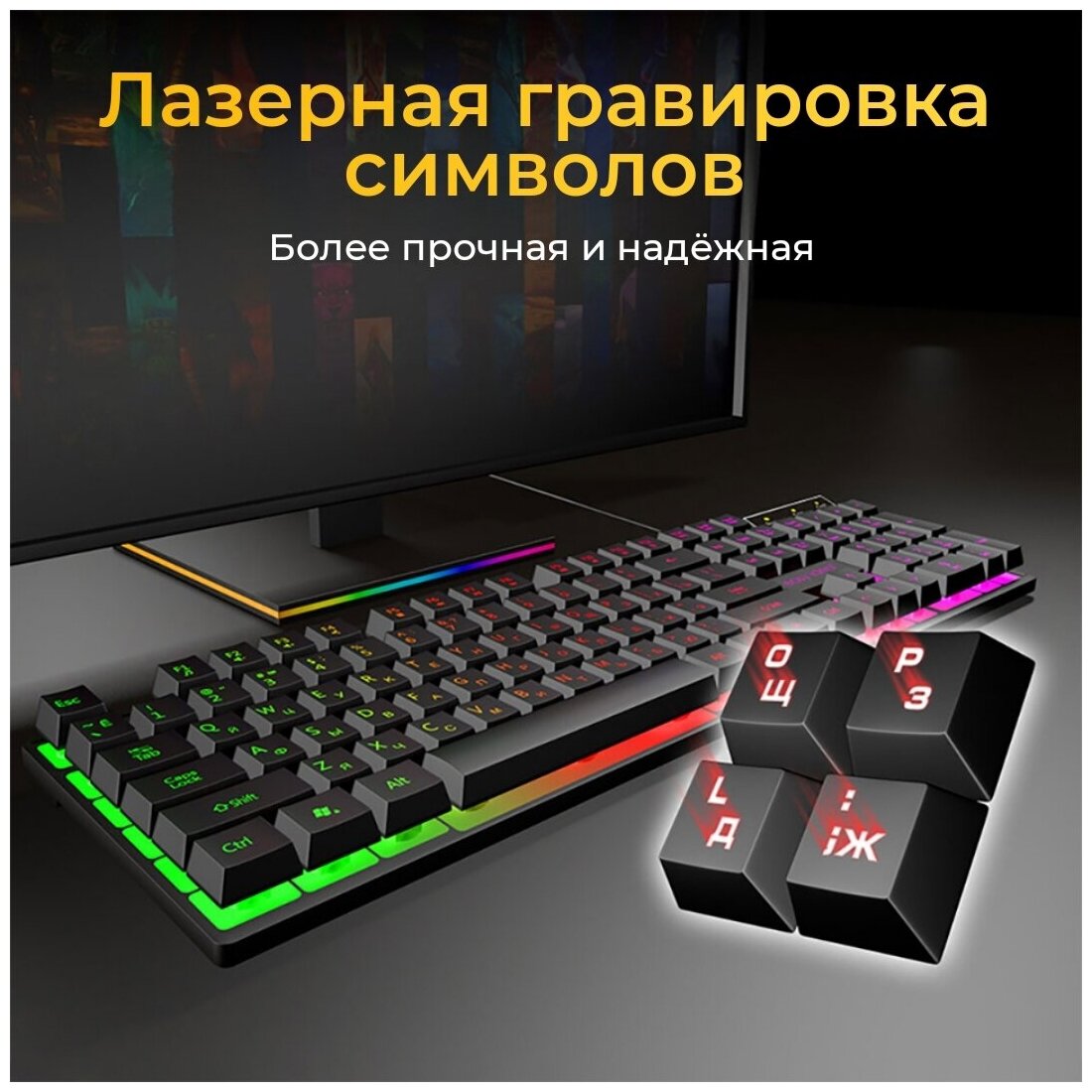 10 цен на Клавиатура "IMICE" мембранная, игровая, 2 режима подсветки, Водо-защита, 104 клавиши, USB проводная черный RU/EN