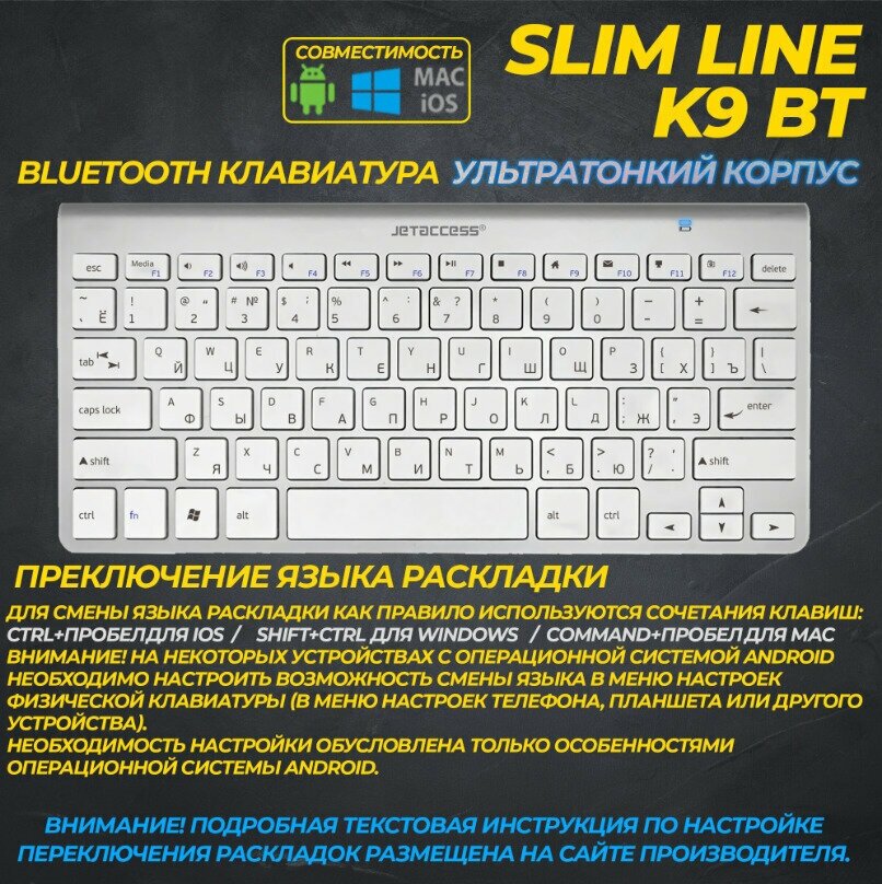 Клавиатура Jet-A JETACCESS Slim Line K2 BT серебристая