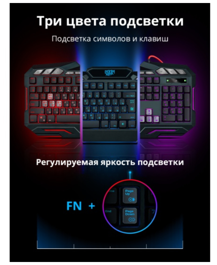 Клавиатура Defender, игровая клавиатура, черный , кириллица+QWERTY, с подсветкой информация: