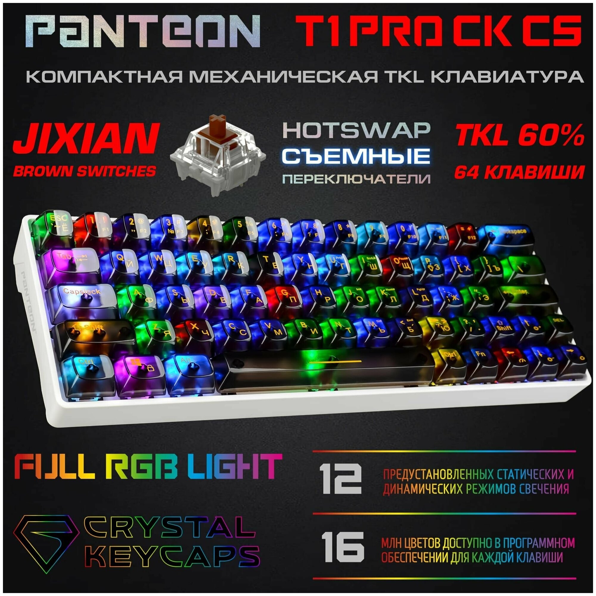 Компактная механическая игровая программируемая клавиатура с настраиваемой LED-подсветкой FULL RGB LIGHT PANTEON T1 PRO CK CS белая информация: