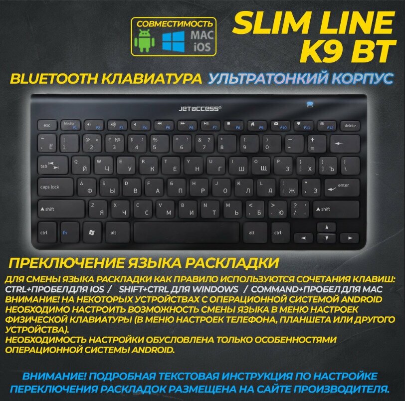 Беспроводная мини Bluetooth-клавиатура Jet.A SlimLine K9 BT Black для планшетных компьютеров информация: