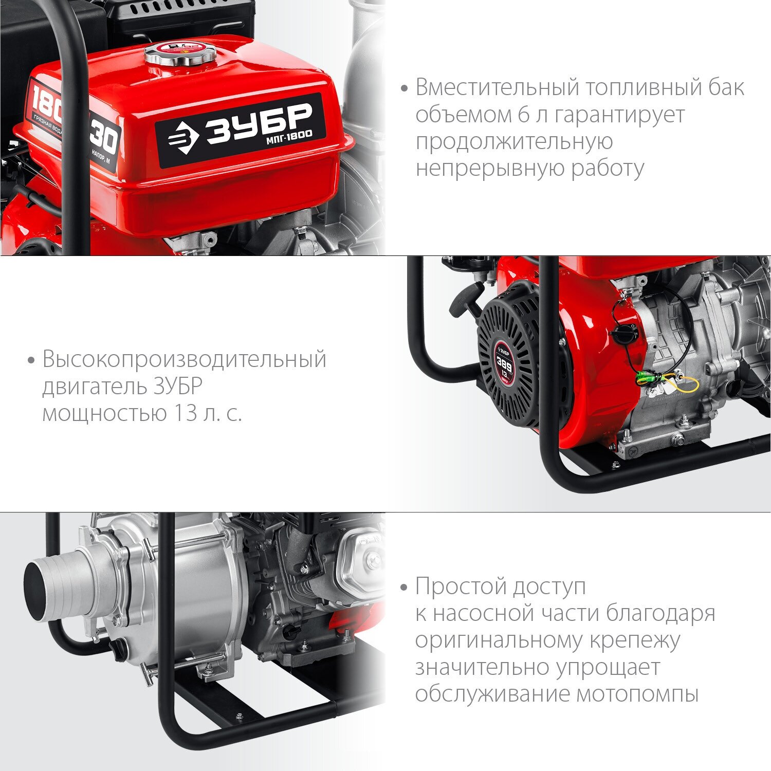ЗУБР 1800 л/мин, для грязной воды мотопомпа бензиновая МПГ-1800 информация: