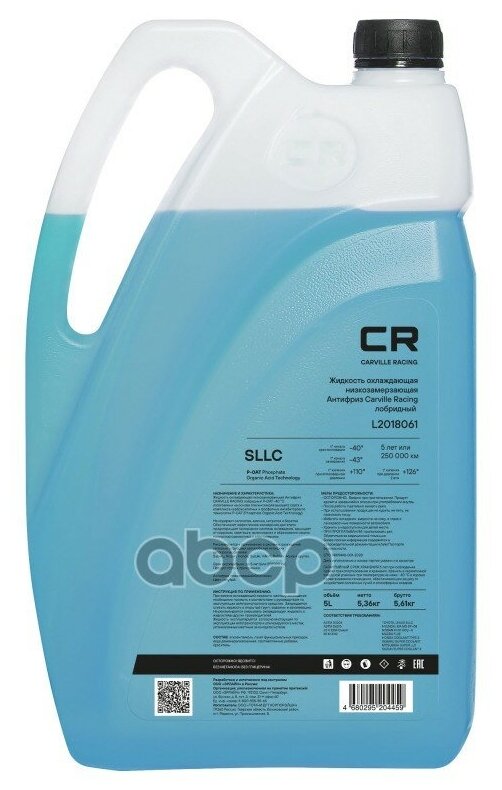 Антифриз Cr Subaru/Nissan/Honda, P-Oat, -40°с, Готовый, 5л (4) Carville Racing арт. L2018061 информация: