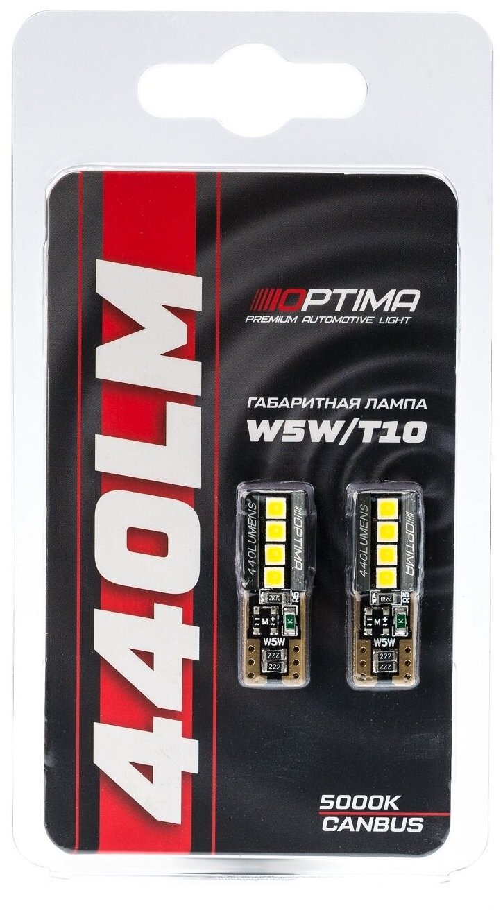 Отзывы на Светодиодная лампа Optima Premium W5W LG CHIP CAN-BUS 440 Lm 12V 5000К с обманкой (2 лампы)