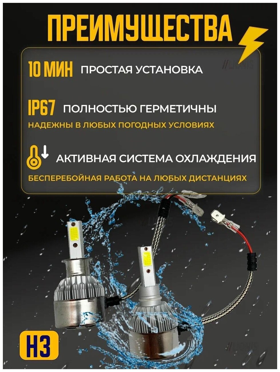 Отзывы на Лампа светодиодная H3 /лампы фары авто 2шт/ LED C6 (ярче ксенона) 12/24V 6000K 3800Lm
