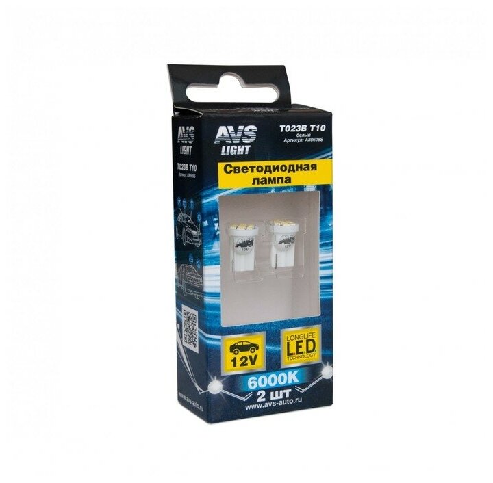 A80605s_лампочка! Светодиодная T027 Т10 (W2.1x9.5d) 5Smd 5050 3 Chip W5w, Блистер 2 Шт, Белый AVS арт. A80605S